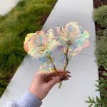 Elke roos is gemaakt met een iriserende, holografische coating die prachtig glinstert in het licht, waardoor een melkwegachtige schittering ontstaat die gewoonweg betoverend is.