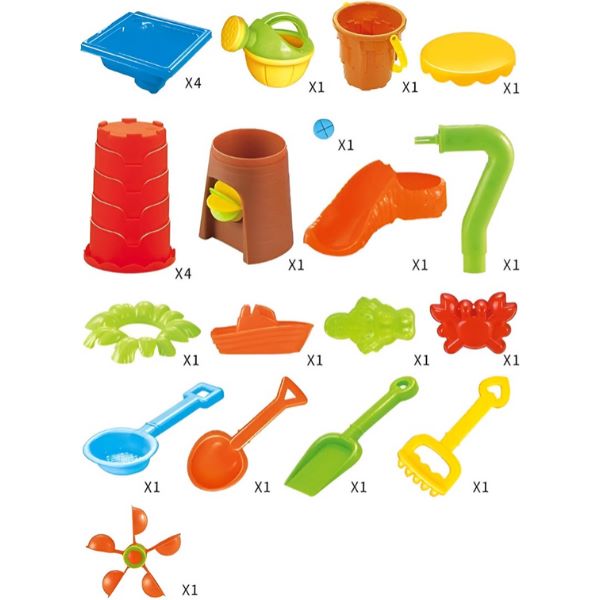 De SANDLANDIA set is gemaakt van stevig plastic en is ontworpen om buitenomstandigheden te weerstaan, zodat je lang plezier hebt en veilig kunt spelen in de tuin of op het strand.