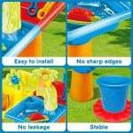 De SANDLANDIA set is gemaakt van stevig plastic en is ontworpen om buitenomstandigheden te weerstaan, zodat je lang plezier hebt en veilig kunt spelen in de tuin of op het strand.